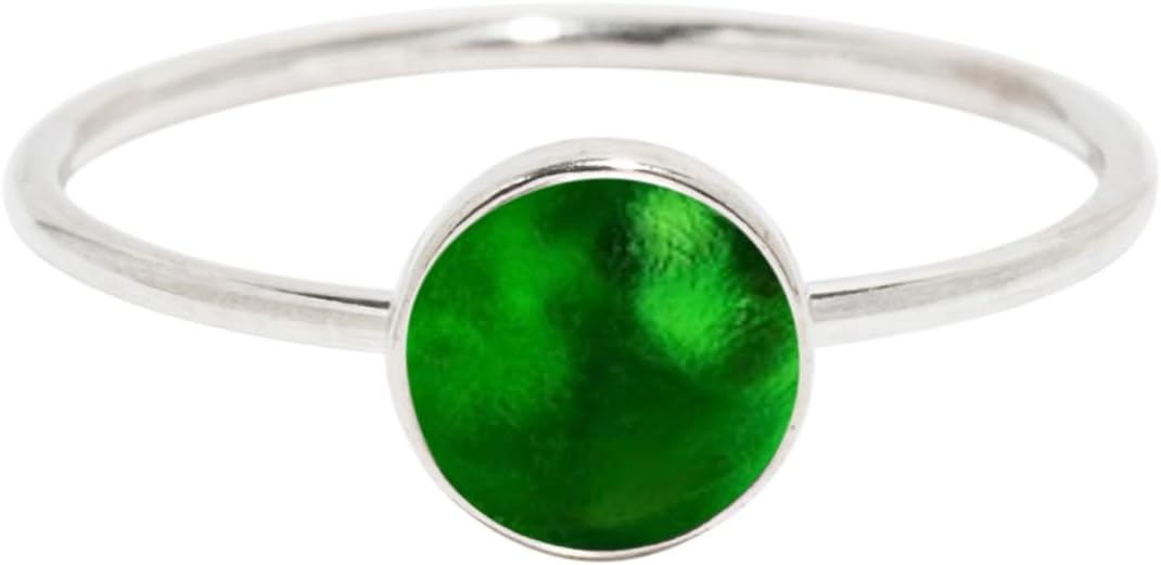A beautiful glowing 6mm glass gem handmade from the broken reclaimed vintage bottles and dishware is featured in the beautiful and simple stacking ring in sterling silver. Available in eleven vintage inspired jewel like colors from the old glass, each includes it's own history and story. A lovely eco friendly accessory choice. Made to wear as a solitaire, or nestle several colors together for a jeweltone display. Available in sizes 6 through 10.