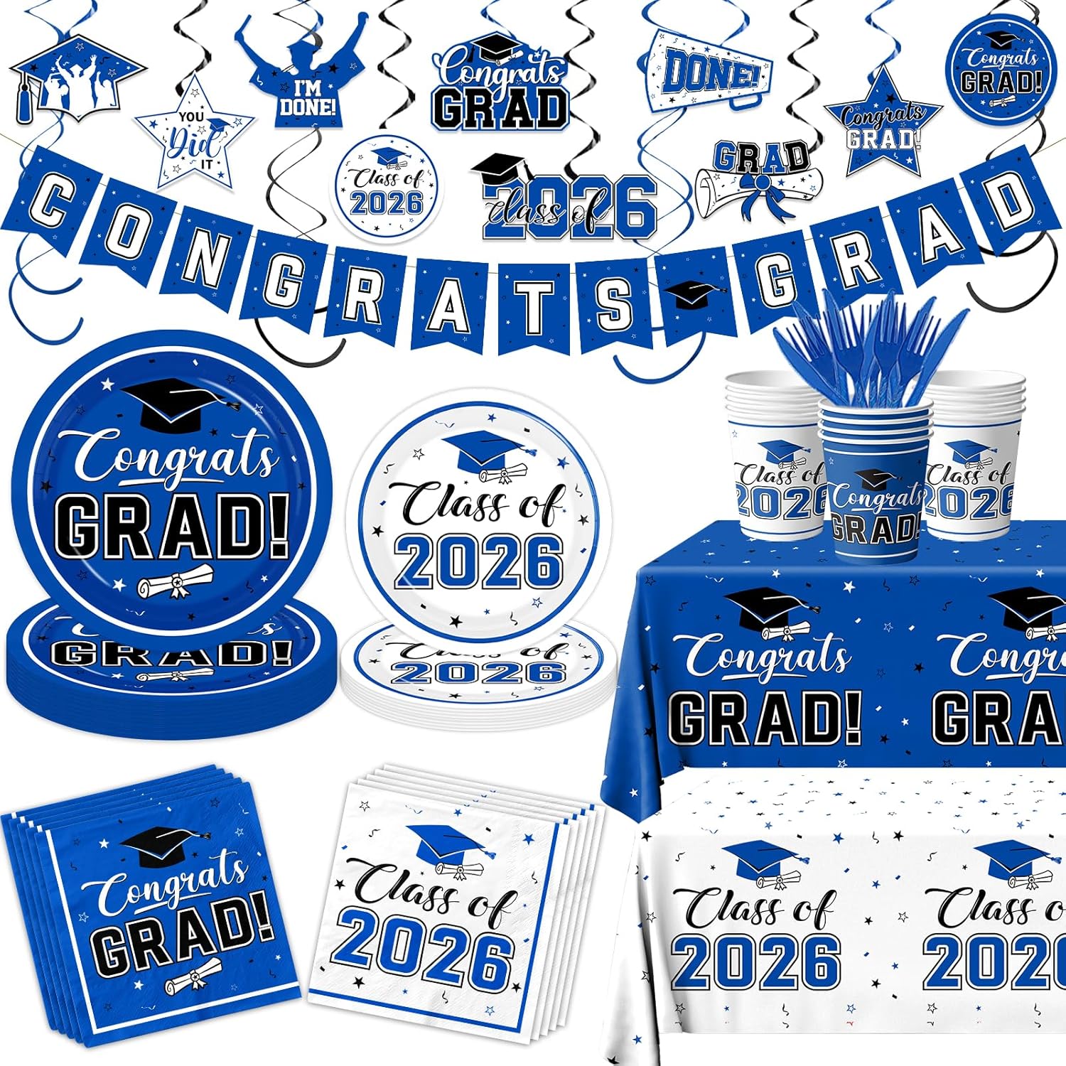 | Included Components | Banner, Tablecloth, banner and hanging swirls, plates and napkin cups |